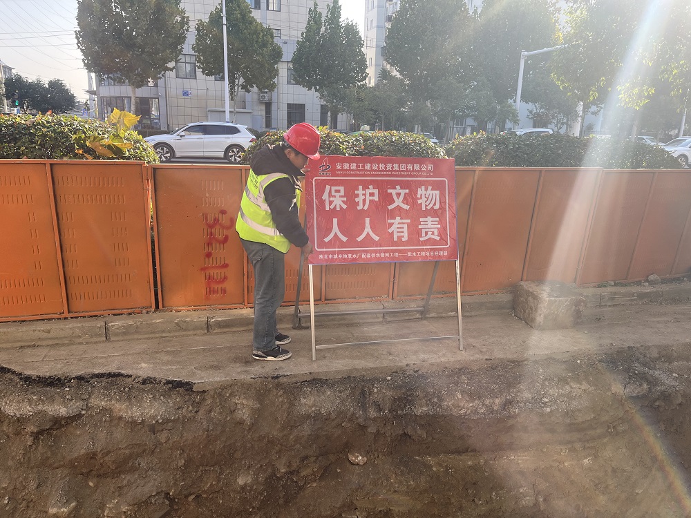 項目部在開(kāi)展溝槽開(kāi)挖作業(yè)的過(guò)程中,意外發(fā)現一座石像,疑似文物,項目部立即暫停了施工活動(dòng),對現場(chǎng)進(jìn)行了保護,并迅速與當地文物部門(mén)取得了聯(lián)系。隨后,淮北市文物局專(zhuān)家抵達現場(chǎng),項目部全程提供協(xié)助,順利完成了文物的勘查、登記及移交工作,確保了文物得到了恰當的保護。經(jīng)專(zhuān)家初步鑒定,這是一尊明代的石像,具有很高的歷史與藝術(shù)價(jià)值。