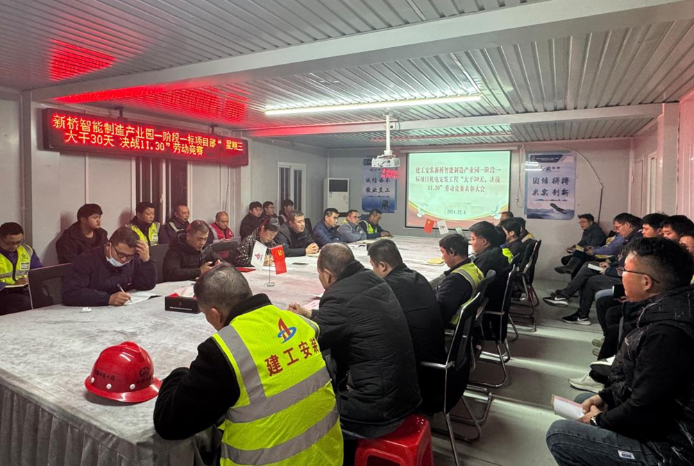近日,建工安裝滁州分公司合肥新橋智能制造產(chǎn)業(yè)園一階段一標機電安裝項目部召開(kāi)“大干30天 決戰11.30”勞動(dòng)競賽總結表彰大會(huì ),表彰競賽期間涌現出的先進(jìn)個(gè)人和優(yōu)勝參建班組。分公司勞動(dòng)競賽領(lǐng)導小組成員、項目部全體員工及參建班組負責人等參會(huì ),會(huì )議由分公司黨支部書(shū)記、副經(jīng)理程茂麗主持。