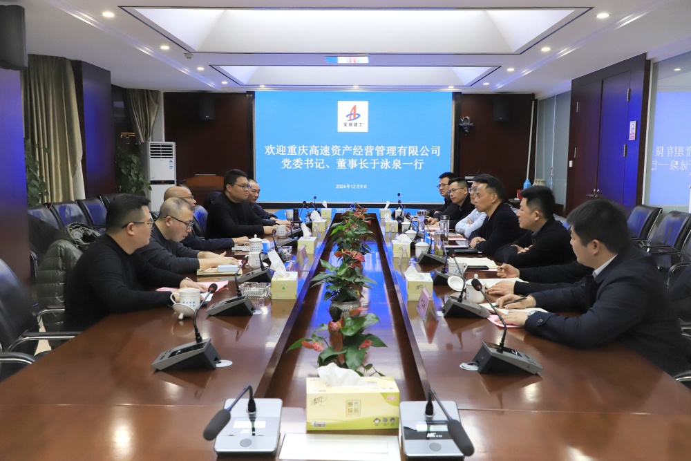 12月9日下午,重慶高速資產(chǎn)經(jīng)營(yíng)管理有限公司黨委書(shū)記、董事長(cháng)于泳泉一行到訪(fǎng)建工商貿物流,公司黨委副書(shū)記、總經(jīng)理張俊熱情接待并舉行工作會(huì )談。