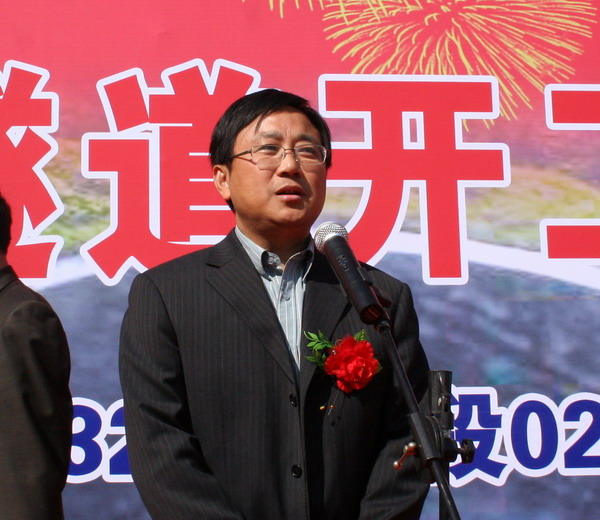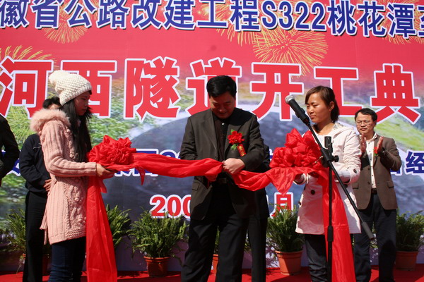 童宗勝董事長(cháng)宣布隧道開(kāi)工。吳銳智書(shū)記為隧道開(kāi)工剪彩。
