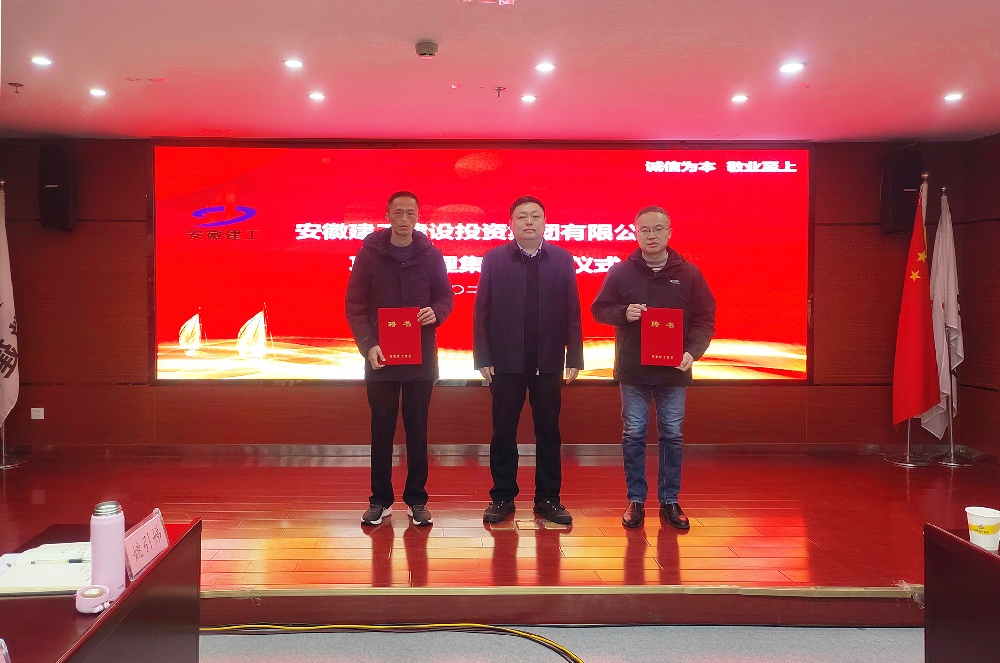 會(huì )上,公司黨委副書(shū)記、工會(huì )主席干戈宣讀了《安徽建工集團控股有限公司關(guān)于2025年度集團項目經(jīng)理分級聘任的決定》,并傳達了楊善斌書(shū)記在集團項目經(jīng)理集中聘任儀式上的講話(huà)精神。公司領(lǐng)導為項目經(jīng)理代表頒發(fā)聘書(shū)。