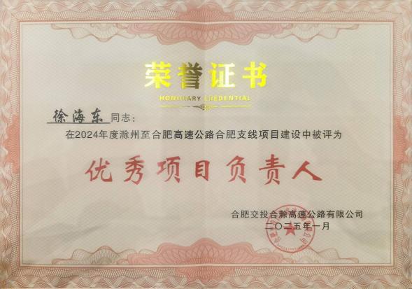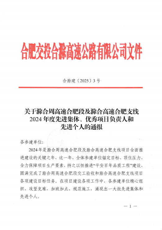 喜訊!建工路港滁合支線(xiàn)項目喜獲滁合周高速合肥段及滁合高速合肥支線(xiàn)2024年度多項榮譽(yù)稱(chēng)號