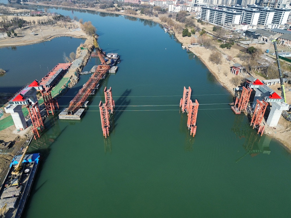近日,建工建投集團太和潁河大橋項目潁河鋼箱系桿拱橋首片鋼箱梁吊裝圓滿(mǎn)完成,拉開(kāi)了項目跨潁河段鋼箱梁架設工作的序幕,標志著(zhù)主橋正式進(jìn)入鋼箱梁吊裝新階段。