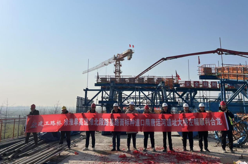 1月20日上午,隨著(zhù)最后一方混凝土澆筑完成,徐淮阜高速淮北段項目種道口隋唐運河遺址大橋左幅順利合龍,項目進(jìn)入全線(xiàn)貫通最后沖刺階段。
