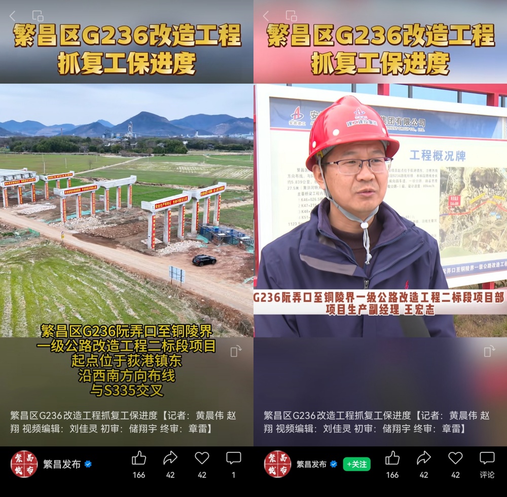 媒體聚焦丨“繁昌發(fā)布”、“繁昌新聞網(wǎng)”報道建工建投集團繁昌區G236改造工程項目掀起大干快上“新”熱潮