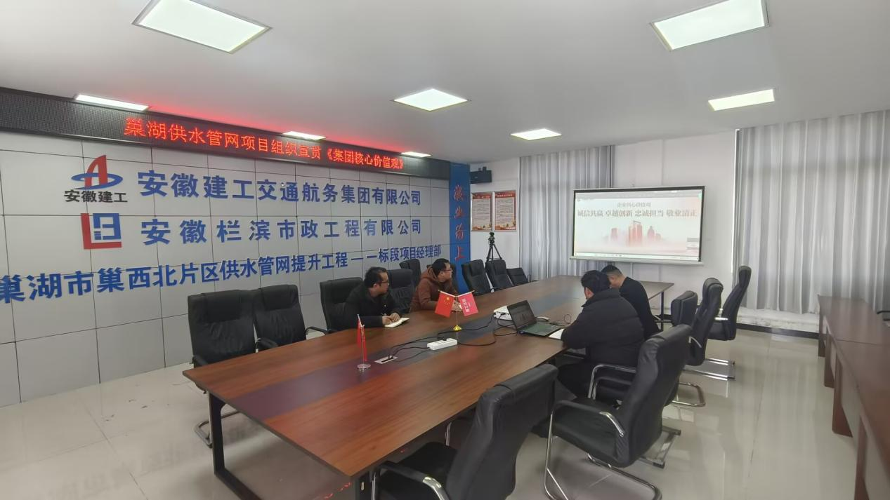 巢湖供水管道網(wǎng)項目召開(kāi)專(zhuān)題會(huì )議,集中學(xué)習了集團發(fā)布的《關(guān)于開(kāi)展安徽建工集團核心價(jià)值觀(guān)學(xué)習宣貫的通知》,鮮明解讀了“誠信共贏(yíng) 卓越創(chuàng )新 忠誠擔當 敬業(yè)清正”核心要義。