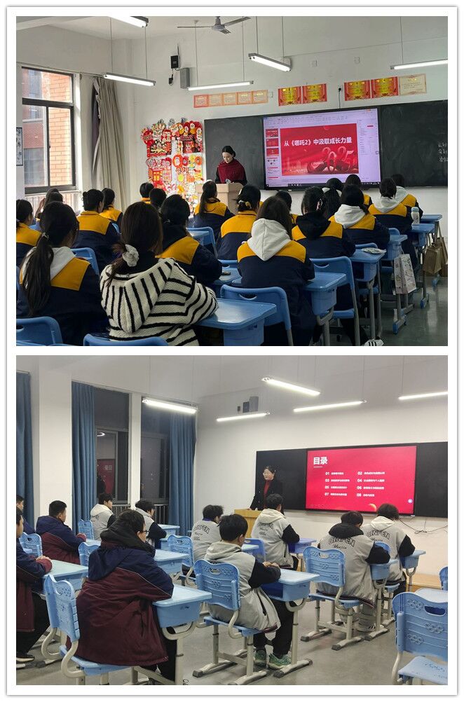 系團總支制作團課課件,以春節檔熱門(mén)影片《哪吒之魔童鬧?!窞榍腥朦c(diǎn),將主人公從叛逆少年到覺(jué)醒成長(cháng)的蛻變歷程,與校園生活精準映射。各班班主任通過(guò)分析電影中“自我認知-突破困境-實(shí)現蛻變”的三階段故事,啟發(fā)團員青年要“打破偏見(jiàn),追求自我;勇于改變,突破自我;風(fēng)華正茂,銳意進(jìn)取”,帶領(lǐng)系部團員青年感悟哪吒“我命由我不由天”的拼搏精神、“敢作敢當,勇于承擔責任”的擔當精神和“心懷正義,勇于斗爭”的正義精神。