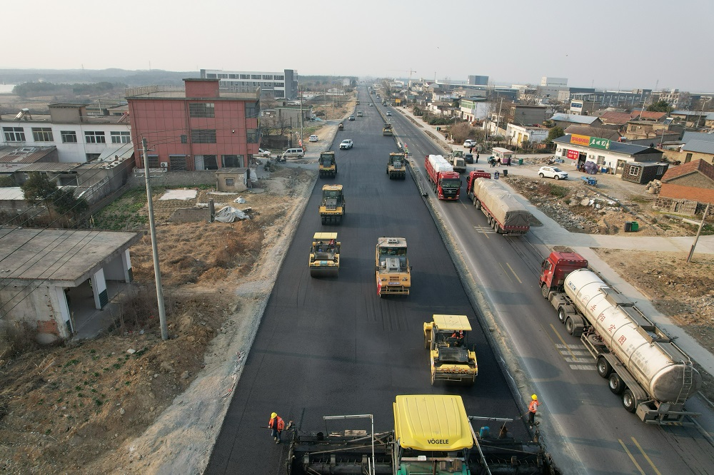 滿(mǎn)弓沖刺“開(kāi)門(mén)紅”丨建工建投集團G104明光段一級公路改建工程二標段加速推進(jìn)瀝青路面施工