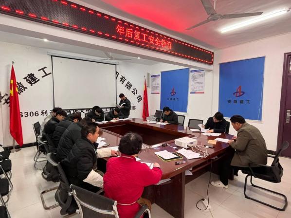 專(zhuān)題會(huì )議謀安全,嚴守安全底線(xiàn)。項目積極響應公司節后復工復產(chǎn)要求,強化統籌部署,開(kāi)展復工復產(chǎn)安全工作部署會(huì )議,對關(guān)鍵崗位人員進(jìn)行了重點(diǎn)培訓和考核,同時(shí)針對新進(jìn)場(chǎng)及轉崗人員進(jìn)行“三級安全教育”,持續夯實(shí)安全管理根基,筑牢安全生產(chǎn)防線(xiàn)。項目部建立項目復工任務(wù)臺賬,動(dòng)態(tài)跟蹤復工人員到崗情況,調整班組分工,全力推進(jìn)項目復工復產(chǎn)。