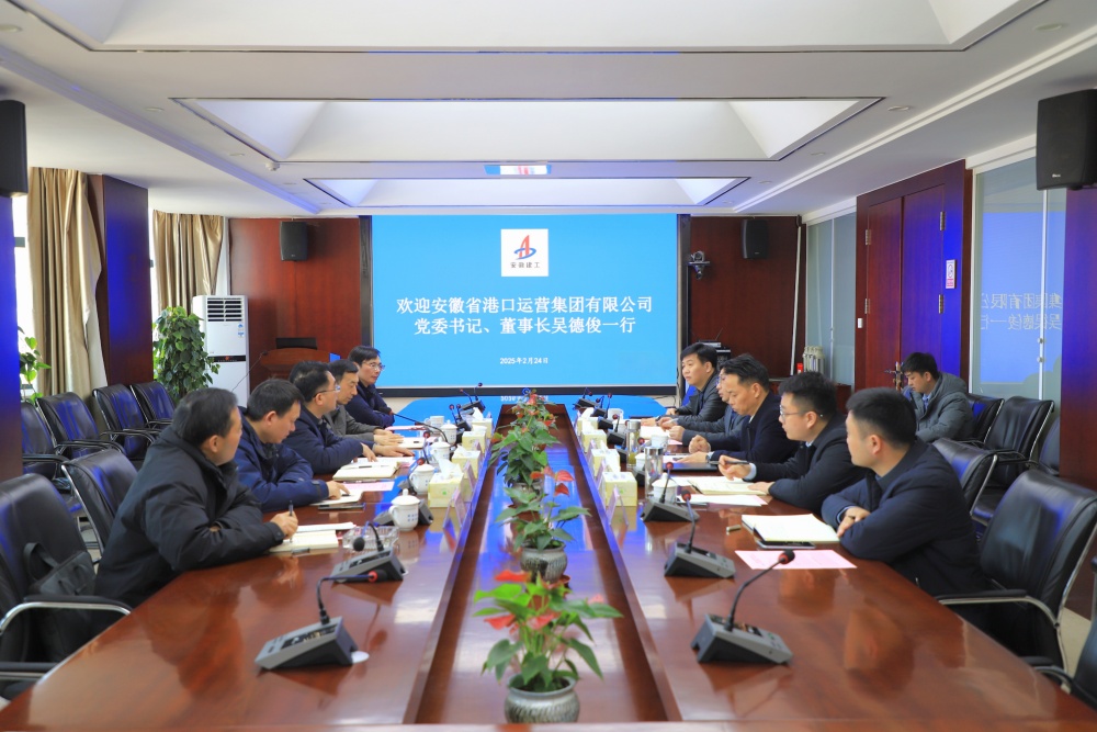 2月24日,安徽省港口運營(yíng)集團有限公司黨委書(shū)記、董事長(cháng)吳德俊一行到訪(fǎng)建工商貿物流,公司黨委副書(shū)記、總經(jīng)理張俊熱情接待并就深化合作進(jìn)行座談交流。