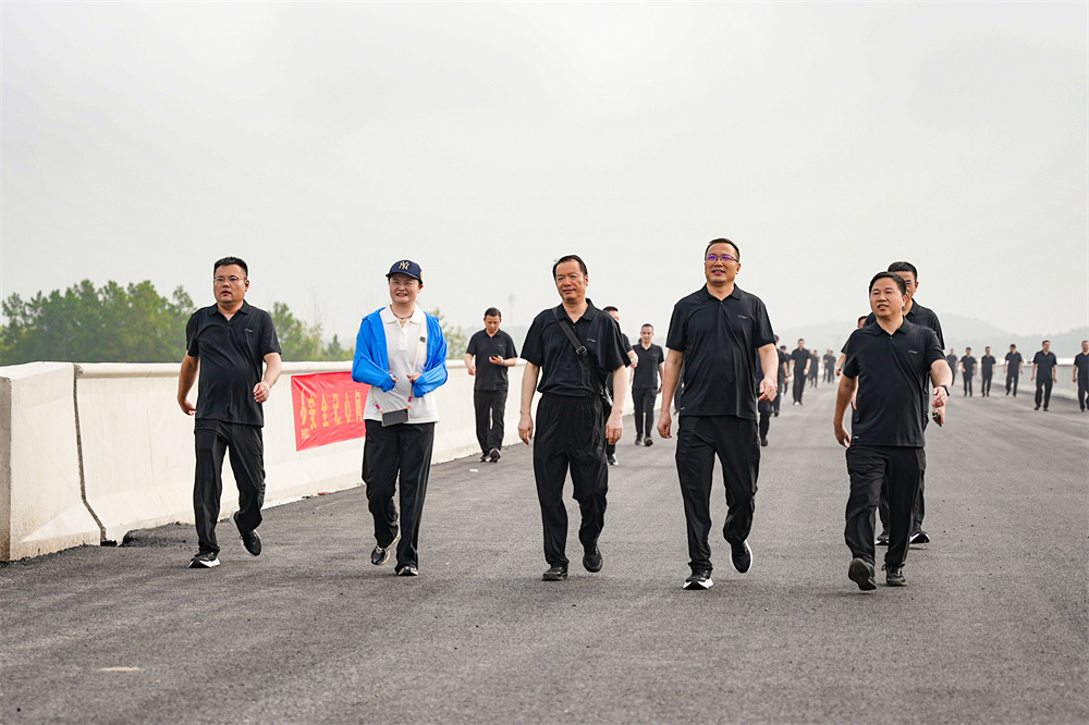 胡晨在講話(huà)中強調,涇青高速作為安徽省“五縱十橫”高速公路網(wǎng)的重要組成部分,既是串聯(lián)區域交通的“動(dòng)脈線(xiàn)”,更是推動(dòng)地方經(jīng)濟發(fā)展、改善民生福祉的“希望路”。他高度認可建工建投集團在項目建設中展現的責任擔當與專(zhuān)業(yè)實(shí)力,寄語(yǔ)全體建設者以此次健步走活動(dòng)為契機,將徒步中迸發(fā)的活力、毅力轉化為工作干勁,全力推進(jìn)項目建設,確保這條連接“詩(shī)意山水”與“發(fā)展機遇”的通道早日通車(chē)、惠及百姓。