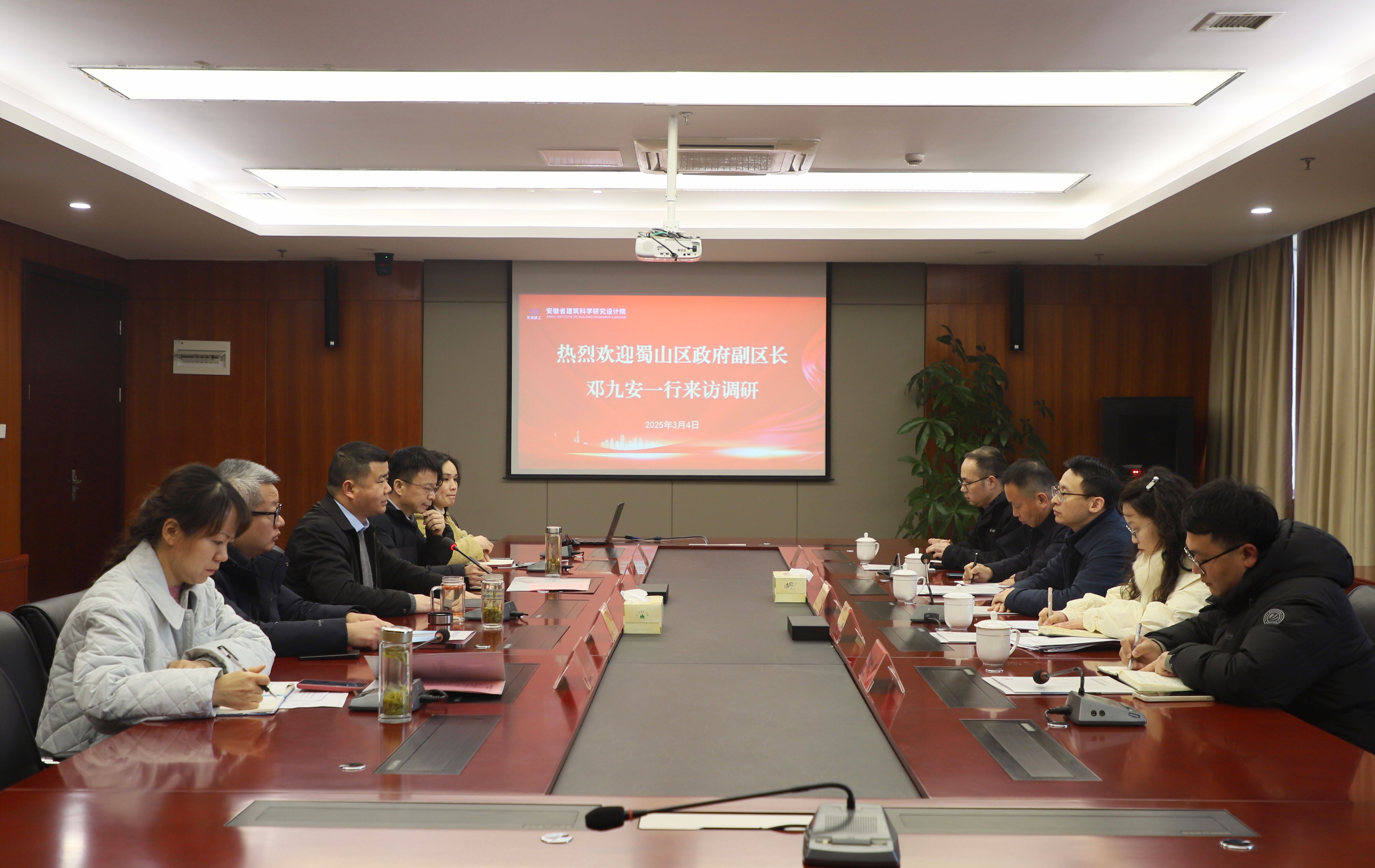 3月4日下午,蜀山區政府副區長(cháng)鄧九安一行赴安徽建科調研,院黨委副書(shū)記、院長(cháng)劉春雷熱情接待,并舉行工作會(huì )談。