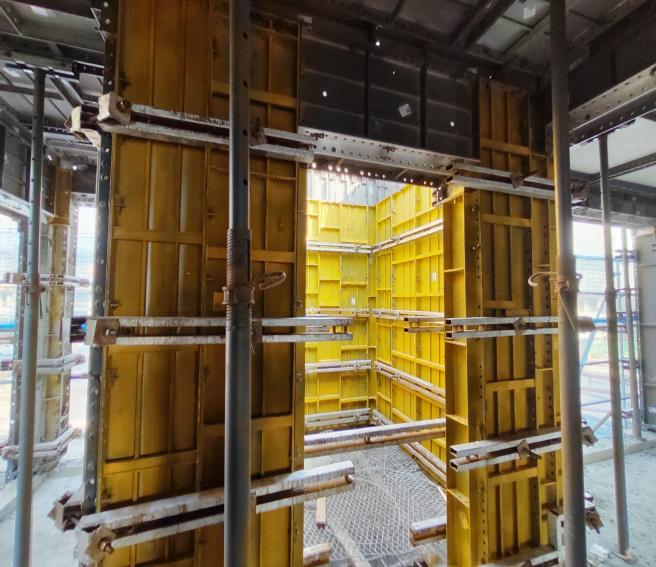 建設過(guò)程中,項目先后應用實(shí)施了后澆帶快易封堵、施工升降機基礎底板一體化、翻板式施工升降機免接料平臺、拉桿式懸挑腳手架、非深化設計鋁模等8項施工技術(shù),共實(shí)現量化經(jīng)濟效益約286萬(wàn)元。尤其是針對自身裝配率高的特點(diǎn),采用新技術(shù)非深化設計鋁模施工技術(shù),對比傳統木模板施工,每平米減少成本約10元,每層工期縮減1天,僅此一項就創(chuàng )造量化經(jīng)濟效益約190萬(wàn)元,縮短總工期約30天,有效實(shí)現了降本提速。