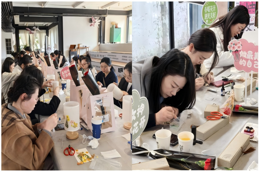 大家參觀(guān)了合柴1972·文創(chuàng )園,在獨有的厚重的工業(yè)印記中回顧城市記憶,感受新時(shí)代發(fā)展。組織了手工DIY活動(dòng),在老師的指導下,手工制作了壓花臺燈和螺鈿飾品,女職工們發(fā)揮想象,用靈巧的雙手精心構思創(chuàng )作,每個(gè)人都制作出獨屬于自己的作品。