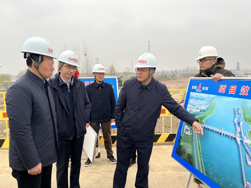 安徽省財政廳黨組書(shū)記、廳長(cháng)谷劍鋒一行赴建工水利姑溪河當涂閘樞紐工程項目檢查指導