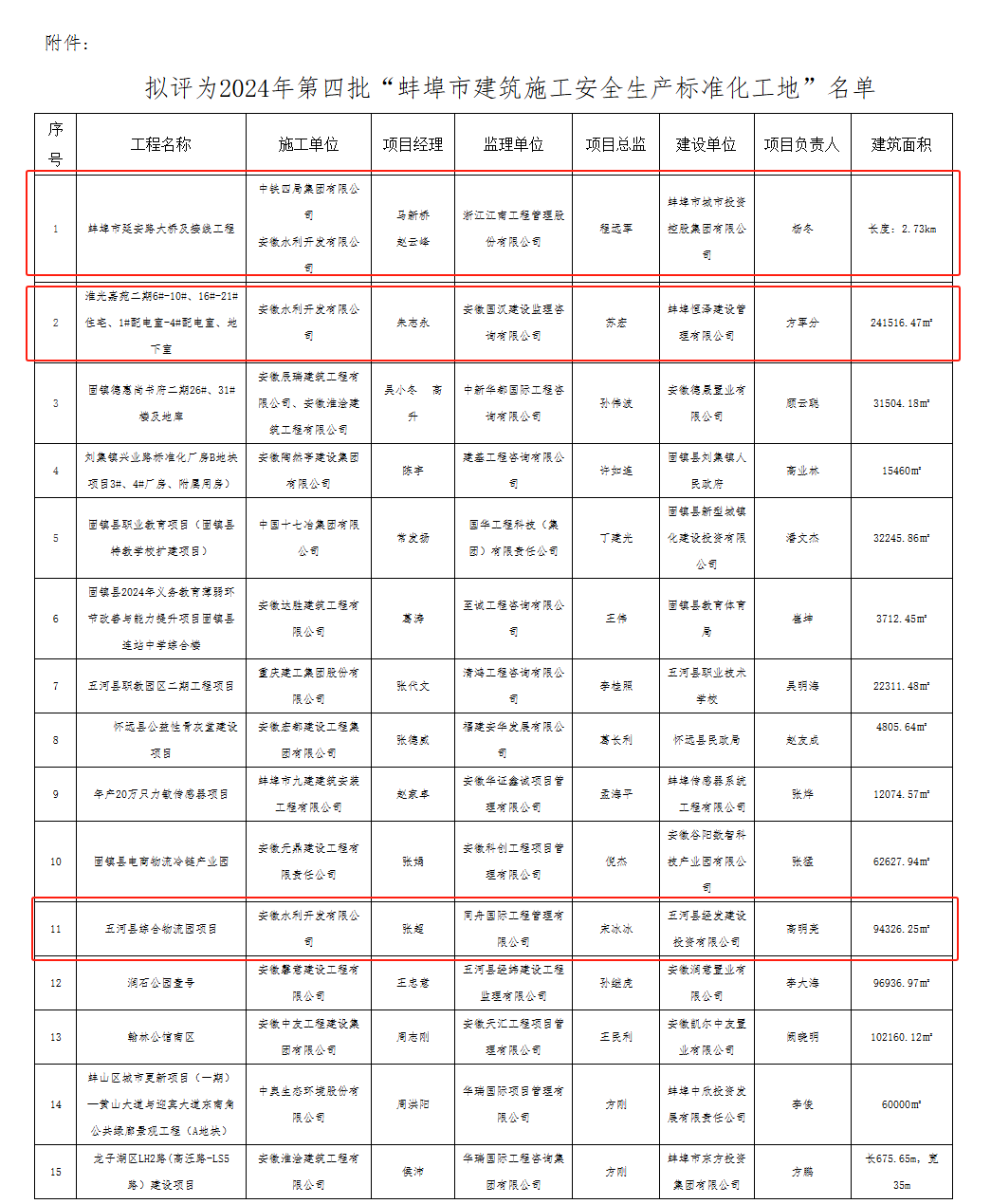 近日,建工水利承建的延安路大橋及接線(xiàn)工程、淮光嘉苑二期安置房項目、五河縣綜合物流園項目憑借高標準的安全管理體系與規范化施工,獲評“蚌埠市建筑施工安全生產(chǎn)標準化示范工地”榮譽(yù)稱(chēng)號。