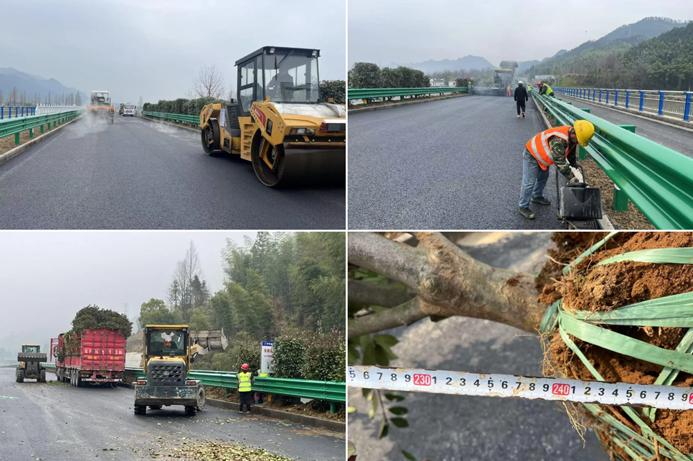 3月10日至11日,建工投資黟縣G530項目綠化工程試驗段施工及瀝青上面層試驗段攤鋪?lái)樌瓿伞?/span>