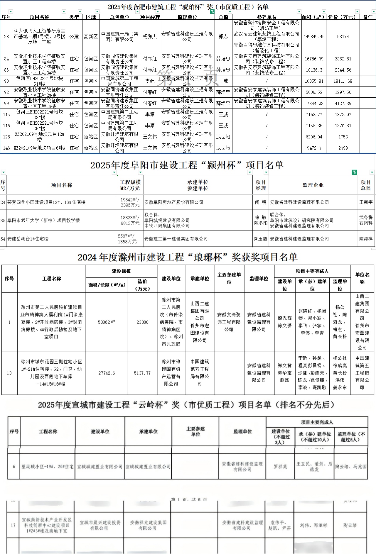 近日,安徽省建科院多個(gè)項目獲得"琥珀杯""潁州杯""瑯琊杯""云嶺杯"四項優(yōu)質(zhì)工程獎項,彰顯了我院在建筑工程領(lǐng)域的卓越實(shí)力。