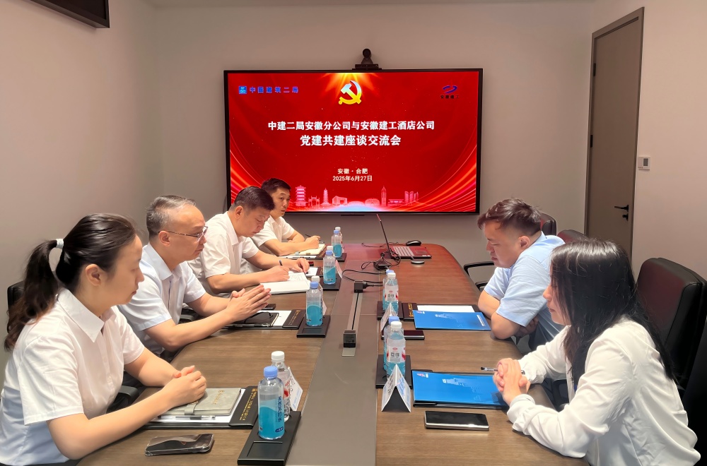 6月27日,建工酒店公司與中建二局安徽分公司開(kāi)展黨建共建座談交流會(huì )。公司黨委副書(shū)記、副總經(jīng)理聶猛,中建二局安徽分公司黨委副書(shū)記、紀委書(shū)記、工會(huì )主席黃橙參加座談會(huì )。會(huì )上,雙方圍繞彼此在業(yè)務(wù)領(lǐng)域合作、黨建聯(lián)建等方面展開(kāi)深入交流。