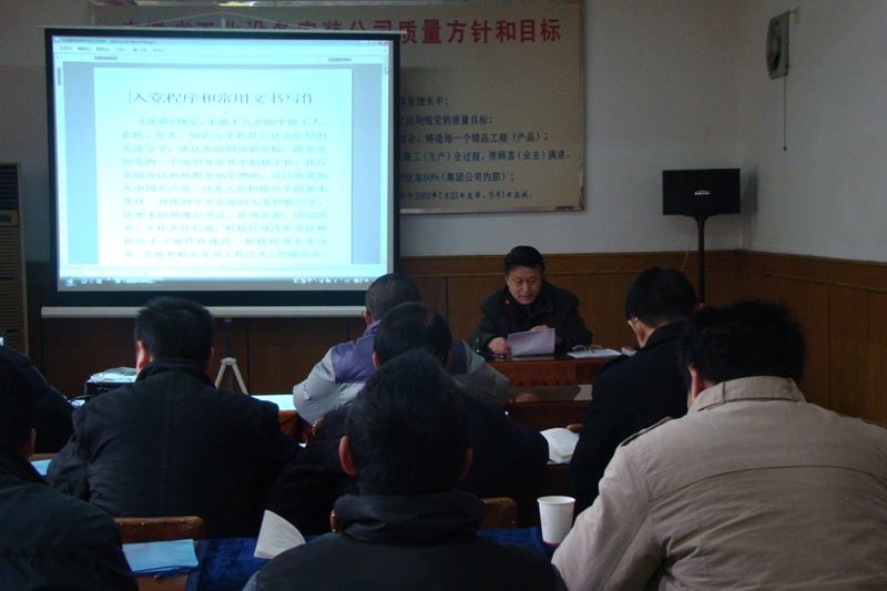隨后與課人員認真觀(guān)看了“永鑄輝煌——中國共產(chǎn)黨員波瀾壯闊的歷史”、“共產(chǎn)黨員的權利和義務(wù)”及“以實(shí)際行動(dòng)爭取早日入黨”等電教片。公司紀委書(shū)記、工會(huì )主席、黨辦主任樊德生同志還就“入黨程序及常用文書(shū)寫(xiě)作”做了專(zhuān)題授課,講解細致,分析透徹。