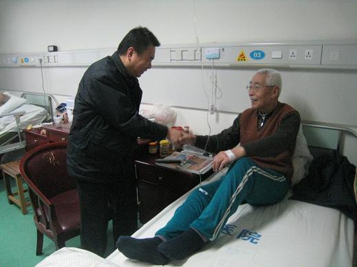 圖為12月8日,該公司黨委書(shū)記鄭平同志在安徽醫學(xué)院附屬醫院看望了住院老干部劉梅村同志。