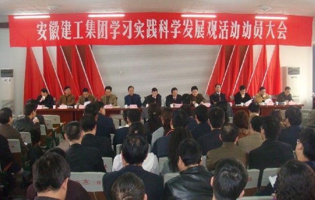 3月18日上午,安徽建工集團有限公司召開(kāi)深入學(xué)習實(shí)踐科學(xué)發(fā)展觀(guān)活動(dòng)動(dòng)員大會(huì )。省屬企業(yè)學(xué)習實(shí)踐活動(dòng)第三指導檢查組組長(cháng)蔣福亮、副組長(cháng)王健等及省國資委監事會(huì )第八辦事處主任周勇應邀出席大會(huì );集團公司黨政領(lǐng)導班子成員,所屬各單位領(lǐng)導班子成員及有關(guān)部門(mén)負責人,集團公司機關(guān)全體黨員參加了會(huì )議。集團公司副董事長(cháng)、學(xué)習實(shí)踐活動(dòng)領(lǐng)導小組副組長(cháng)李長(cháng)斌主持會(huì )議。