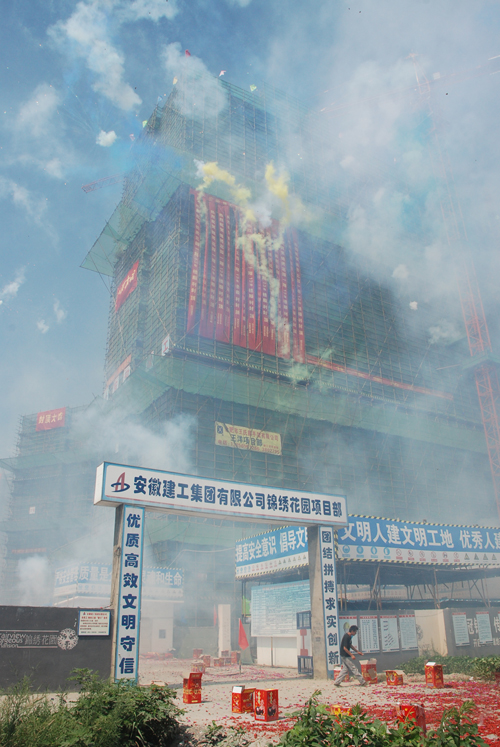 2012年7月26日上午,陽(yáng)光明媚,禮炮齊鳴,安徽九華房地產(chǎn)開(kāi)發(fā)有限公司開(kāi)發(fā)建設的錦繡花園項目11號、12號、13號住宅樓工程結構順利封頂。九華公司董事長(cháng)、總經(jīng)理楊斌,副總經(jīng)理吳良照,黨總支副書(shū)記楊建強及公司各部門(mén)負責人出席了慶典儀式,施工和監理單位相關(guān)人員一同參加了慶典儀式。