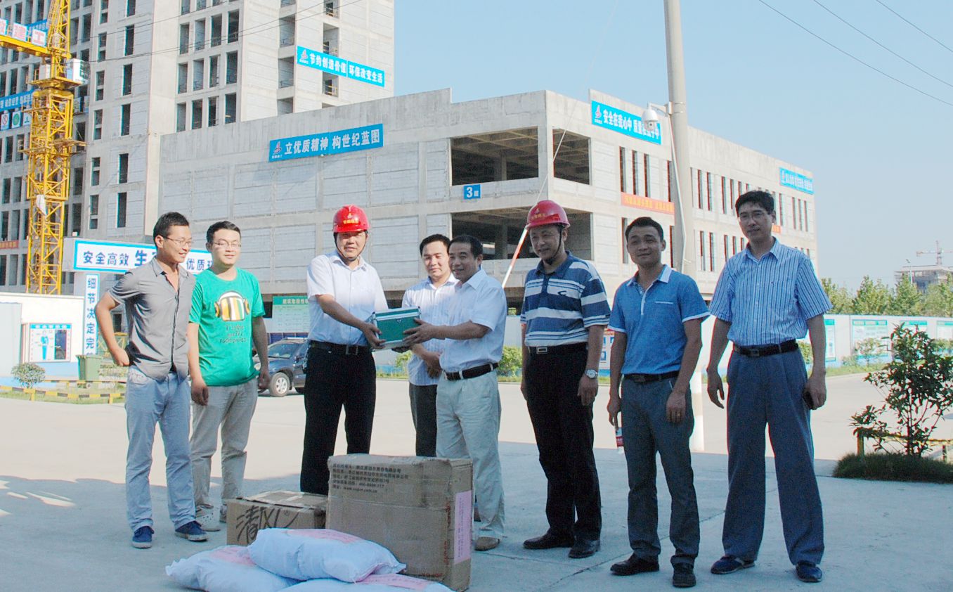 炎炎夏日,高溫酷暑,723日起,公司總經(jīng)理陳傳文、黨委書(shū)記徐文聯(lián)、黨委副書(shū)記、工會(huì )主席江萍等公司領(lǐng)導先后來(lái)到安徽省城鄉規劃建設大廈、明光市花園路棚改小區等工程項目,親切慰問(wèn)了一線(xiàn)施工人員,并為他們送去醫用急救箱、防暑、解暑等生活用品。至此,工程公司2014夏季送清涼活動(dòng)正式拉開(kāi)帷幕。