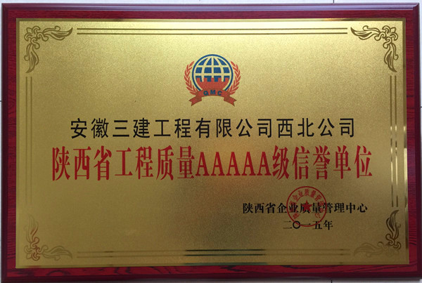 安徽三建西北公司榮膺“陜西省工程質(zhì)量AAAAA級信譽(yù)單位”