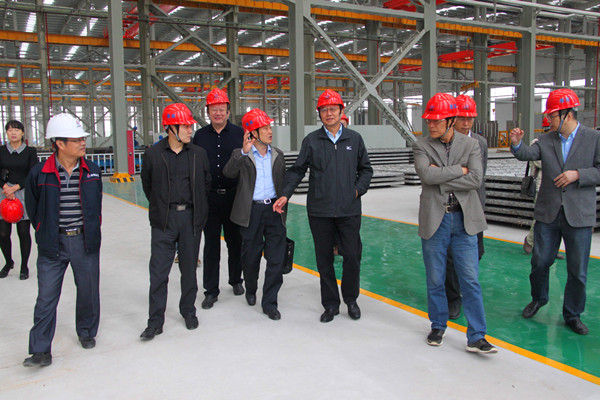 張長(cháng)淮一行實(shí)地參觀(guān)了內墻板、外墻板、疊合板三條工業(yè)化建筑自動(dòng)生產(chǎn)線(xiàn),詳細聽(tīng)取企業(yè)現狀和建筑工業(yè)發(fā)展情況、產(chǎn)品性能優(yōu)勢等方面的匯報。他對公司作為安徽本土企業(yè)大力推動(dòng)建筑業(yè)轉型升級給予高度評價(jià)。他指出,合肥市致力于將建筑產(chǎn)業(yè)化打造成為又一支柱產(chǎn)業(yè),希望公司要緊緊抓住當前難得的機遇,充分發(fā)揮總承包的優(yōu)勢,在搞好部品部件生產(chǎn)的同時(shí),特別要注重深化設計,完善現場(chǎng)吊裝裝配工藝流程,力爭做強做大。同時(shí)他要求隨行部門(mén)要切實(shí)關(guān)心關(guān)注本土企業(yè),加強過(guò)程指導,搞好服務(wù)保障,盡量讓企業(yè)少走彎路。