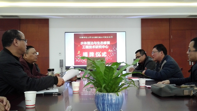2016年1月2日,安徽省交通航務(wù)工程有限公司與安徽師范大學(xué)在合肥舉行“水體整治與生態(tài)修復工程技術(shù)研究中心”成立揭牌儀式。安師大環(huán)境學(xué)院院長(cháng)趙廣超、院長(cháng)助理伍永鋼及段文松副教授,安徽交航董事長(cháng)、黨委書(shū)記、總經(jīng)理李世龍,副總經(jīng)理方申柱、劉朝發(fā),總工辦副主任衛邦齊等參加。