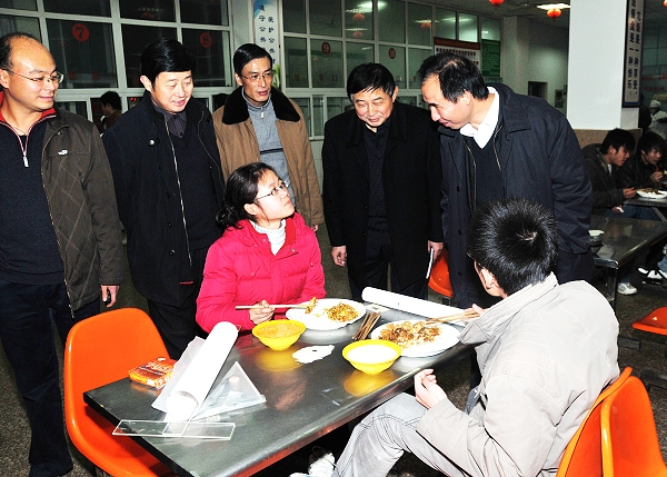 隨后,程廳長(cháng)一行在校領(lǐng)導的陪同下,實(shí)地察看了校園環(huán)境、實(shí)訓場(chǎng)地和設施,并叮囑學(xué)校要重視和確保學(xué)生實(shí)習安全。程廳長(cháng)還深入到學(xué)生宿舍和學(xué)生餐廳視察,并就助學(xué)金發(fā)放和伙食等問(wèn)題與學(xué)生進(jìn)行交談。
