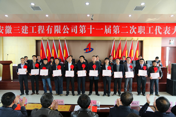 3月10日、11日,安徽三建工程有限公司十一屆二次職工代表大會(huì )在合肥隆重召開(kāi)。來(lái)自全公司各單位的200多名正式代表和列席代表滿(mǎn)懷豪情齊聚一堂,共商公司改革發(fā)展和經(jīng)營(yíng)生產(chǎn)大計,為公司轉型升級、科學(xué)發(fā)展獻計獻策。大會(huì )聽(tīng)取并審議通過(guò)了《經(jīng)理工作報告》、《財務(wù)工作報告》等文件;會(huì )議總結和回顧2015年及“十二五”工作,部署和安排2016年工作,明確2016年工作主題是立足“經(jīng)濟效益年”,繼續推進(jìn)企業(yè)轉型升級,走高品質(zhì)發(fā)展之路。會(huì )議的召開(kāi)得到了集團領(lǐng)導的高度重視,安徽建工集團總經(jīng)理、董事、黨委副書(shū)記劉家靜親臨大會(huì )指導并作重要講話(huà);集團公司黨委副書(shū)記牛曙東就民主測評和評議領(lǐng)導干部提出要求,并部署工作。公司領(lǐng)導班子和成員進(jìn)行了述職,代表們對領(lǐng)導班子及成員進(jìn)行了民主測評;會(huì )議表彰了2015年度先進(jìn)單位、先進(jìn)集體、先進(jìn)個(gè)人和首屆“三建好人”,七位同志作了經(jīng)驗交流發(fā)言;會(huì )上選舉了公司董事會(huì )職工董事,對公司機關(guān)部門(mén)負責人進(jìn)行了考核測評,簽訂了集體勞動(dòng)合同和基層單位2016年度經(jīng)濟目標、安全生產(chǎn)及黨支部目標管理責任書(shū);組織與會(huì )人員向公司困難職工幫扶基金捐款。