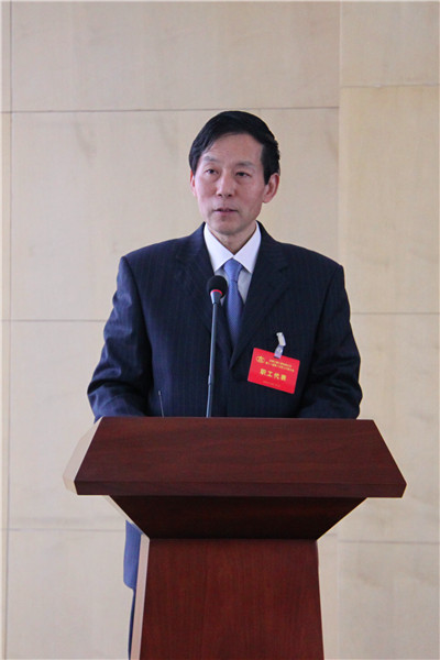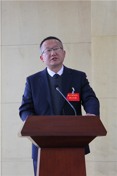 圖為集團公司總經(jīng)理、董事、黨委副書(shū)記劉家靜出席大會(huì )并作重要講話(huà)