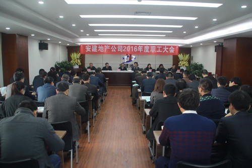 3月25日上午,安徽建工地產(chǎn)有限公司2016年度職工大會(huì )在安建地產(chǎn)21層第三會(huì )議室順利召開(kāi)。安建地產(chǎn)全體員工近百人齊聚一堂、共商大計。集團公司黨委副書(shū)記牛曙東應邀出席會(huì )議,集團公司副總經(jīng)理、安建地產(chǎn)董事長(cháng)霍向東出席會(huì )議并作總結講話(huà),集團黨委工作部主任徐文聯(lián)、集團公司工會(huì )女工部主任胡愛(ài)紅參加了會(huì )議。