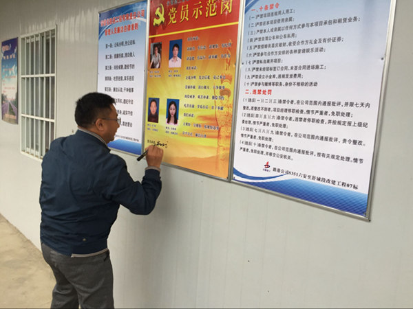 為提高項目部黨員和職工的思想素質(zhì)和業(yè)務(wù)能力,立足崗位爭先創(chuàng )優(yōu),發(fā)揮基層黨組織的引領(lǐng)作用和造血功能,引導黨員立足本職崗位,充分發(fā)揮先鋒模范作用,安徽路港公司S351六舒路與梅山路橋聯(lián)合黨支部于近日組織開(kāi)展以“立足崗位、履職盡責”為主題的黨員示范崗活動(dòng)。