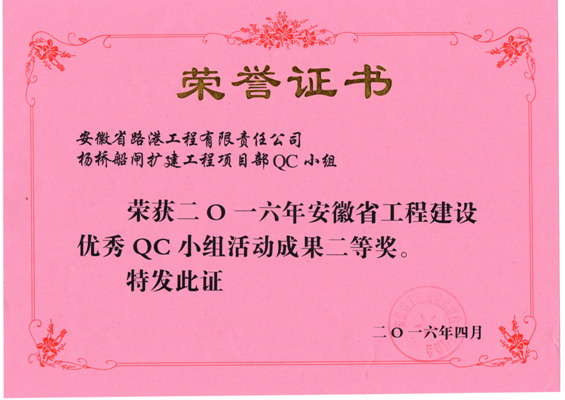 日前,安徽路港公司合肥市郎溪路工程第四標段QC小組開(kāi)展了《樁基聲測管施工質(zhì)量控制 》課題攻關(guān),楊橋船閘擴建工程項目部QC小組開(kāi)展了《閘室墻身砼大面平整度質(zhì)量控制》課題攻關(guān),分別榮獲安徽省工程建設優(yōu)秀QC小組活動(dòng)成果一等獎和二等獎。