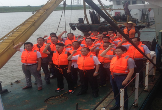 2016年6月23日下午,安徽省交通航務(wù)工程有限公司副總經(jīng)理汪崇龍、疏浚分公司總經(jīng)理董雙武等分公司領(lǐng)導一行蒞臨青弋江疏挖工程項目視察,汪崇龍一行檢查了項目各施工船舶的安全生產(chǎn)情況,隨后在皖蛟龍號上鄭重舉行了安全宣誓活動(dòng)。宣誓由疏浚分公司副經(jīng)理商顯鋒領(lǐng)誓疏浚分公司領(lǐng)導及各項目部負責人、船隊代表參加宣誓。