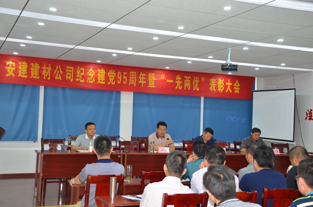 2016年6月28日上午,安建建材公司在安徽瑞特同大工業(yè)園一樓會(huì )議室召開(kāi)紀念建黨95周年暨“一先兩優(yōu)”表彰大會(huì )、黨委中心組“兩學(xué)一做”學(xué)習(擴大)會(huì )議。參加人員有:公司領(lǐng)導、子(分)公司領(lǐng)導班子、機關(guān)部門(mén)副職以上人員、公司全體黨員以及受表彰的“一先兩優(yōu)”人員。會(huì )議由安建建材公司黨委副書(shū)記胡運春主持。