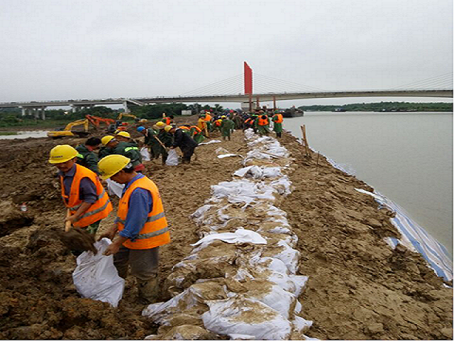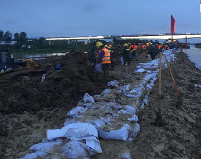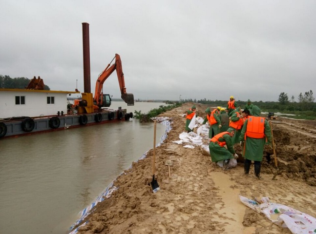7月3日上午8時(shí),在安徽路港合裕線(xiàn)航道整治項目部,近一周持續的強降雨致使南淝河水位已漲至12.35m,遠超歷年最高平均水位11.97m,該項目抗滑樁施工段堤頂道路與水位高差僅1m左右。為防止發(fā)生意外險情,項目部迅速組織人員、機械成立抗洪防汛搶險突擊隊,由項目經(jīng)理帶領(lǐng)奔赴搶險第一線(xiàn)。搶險人員面對咆哮著(zhù)和肆無(wú)忌憚的洪水猛獸,毫無(wú)畏懼之色,全力置身于搶險現場(chǎng),大家用袋裝土加固岸堤,對防汛大堤進(jìn)行加高處理。由于險情嚴峻,該項目部向合裕線(xiàn)07標項目部、銅陵北路高架項目部請求協(xié)助,各兄弟項目部積極配合,迅速組織人員奔赴搶險前線(xiàn)。通過(guò)一天一夜的搶險工作,該段大堤已全部完成加高加固,穩定了大堤險情,安全狀況可控。此次搶險共計投入防汛搶險人員50人、水上挖機1臺、泥駁船3艘、挖掘機3臺、推土機3臺、編織袋5000條、彩條布5000㎡、黏土砂石若干。根據水利部門(mén)的緊急通知,南淝河水位還將持續上漲,南淝河大堤險情依然嚴峻,該項目部將持續監控南淝河水位及已加固大堤情況,及時(shí)增加防汛儲備物質(zhì),安排防汛人員、機械24小時(shí)待命,以保證安全度過(guò)汛期。