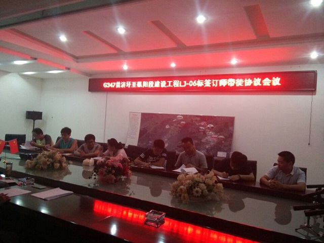 7月25日, 安徽路港G347普濟圩至樅陽(yáng)段建設工程LJ-06標項目部在會(huì )議室舉行“師帶徒”協(xié)議簽訂儀式。在項目部全體成員的共同見(jiàn)證下,6對師徒在《師帶徒協(xié)議書(shū)》上莊重地簽下了自己的名字,涉及技術(shù)員、試驗員、財務(wù)等多個(gè)崗位。