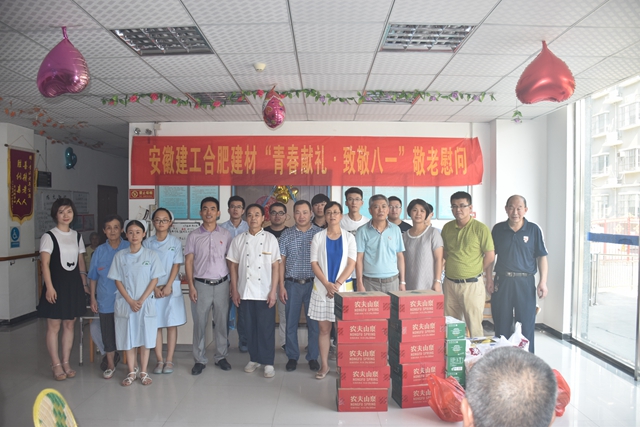 為弘揚中華民族擁軍、尊老的優(yōu)良傳統,在“八一”建軍節來(lái)臨之際,合肥建材團支部在黨支部、工會(huì )帶領(lǐng)下一行16人走進(jìn)合肥市包河區青山老年公寓開(kāi)展敬老慰問(wèn)活動(dòng),為老兵和老人們送去節日問(wèn)候。