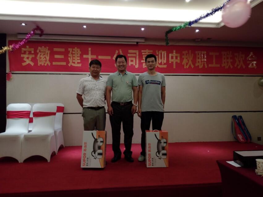 咚咚……”鼓點(diǎn)越來(lái)越快,“咚!”鼓聲停下,大家定睛一看,大紅花傳到第一位“幸運者”的手中,掌聲響起,這位幸運者走上舞臺接受“懲罰”。隨著(zhù)擊鼓傳花游戲的開(kāi)始,安徽三建十一分公司2016年“喜迎中秋聯(lián)歡會(huì )”拉開(kāi)帷幕。