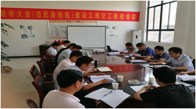 2016年9月20日,新橋大道(團肥路南延)建設工程02、03標段交工驗收會(huì )議在小廟鎮新橋大道項目辦會(huì )議室隆重召開(kāi)。與會(huì )專(zhuān)家聽(tīng)取了各參建單位的總結報告后,合肥市交通質(zhì)量監督站鮑站長(cháng)宣布新橋大道建設工程質(zhì)量合格,同意交工。