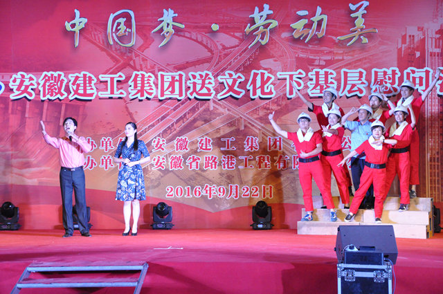9月22日晚,安徽建工集團送文化下基層慰問(wèn)巡演在安徽路港公司沙潁河航道整治工程項目部舉行,將集團公司工會(huì )對一線(xiàn)干部職工的親切慰問(wèn)和深情關(guān)懷,用文藝演出的方式送到職工身邊,安徽路港沙潁河項目部、安徽路橋太和三橋項目部和安徽二建太和房建和市政PPP指揮部的職工共200多人觀(guān)看了演出。