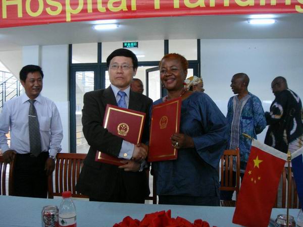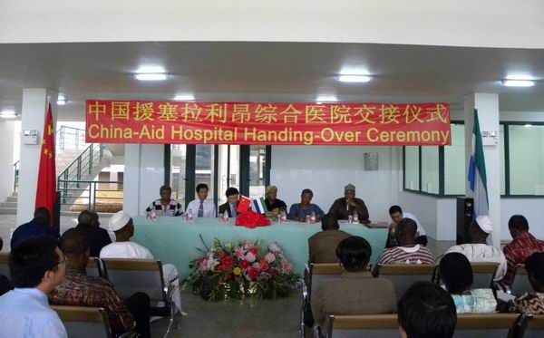 On the morning of May 13 2011 Sierra Leone local time, handing-over ceremony was held on project site for China-aid Sierra Leone hospital project. More than 50 people were present at the ceremony, who were Mr. Kuang Weilin, Ambassador of P.R.China to the Republic of Sierra Leone, Ms. Jusu, Acting Foreign Minister of Sierra Leone, Ms. Bangura, Health Minister of Sierra Leone, some diplomats of Chinese embassy to Sierra Leone, officials from Foreign Ministry and Health Ministry of Sierra Leone, staff of construction technical team and Sierra Leonean journalists.