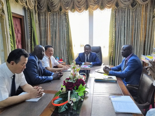 Mr. Chen Xiuxiang is meeting with H.E. Mr. Christophe Mien Zok (first form right), General Manager of Cameroonian Conference Building