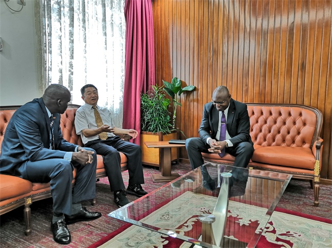 Mr. Chen Xiuxiang is meeting with H.E. Mr. Malla (center), Director of Cameroonian Contract and Budget Department