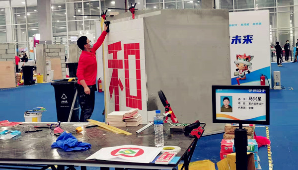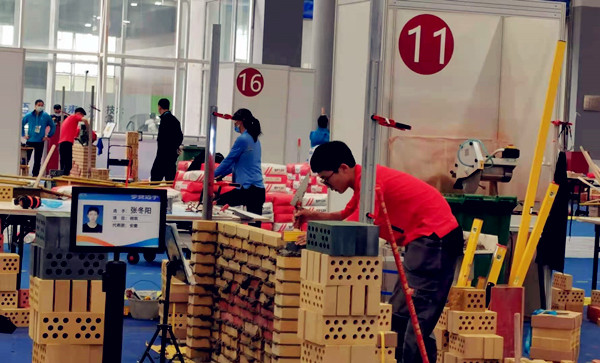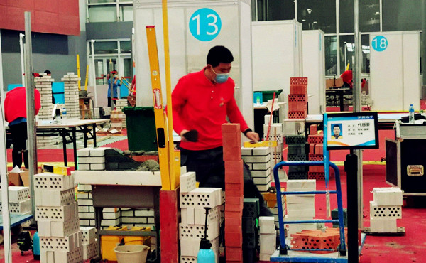 Dai Zhenhao (coach: Lu Shouyong), winner of National Winning Prize at the national competition in the featured masonry event.