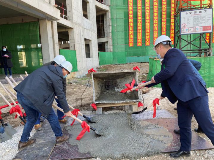 December 28, 2020 / Algiers, Algeria / ACEG Algerian Branch officially held a grand ceremony for the main structures completion of Project Military Academy of Algiers. Director of the Infrastructure Bureau of the Military Academy; Deputy Director of the Infrastructure Bureau of the Military Academy; The General Manager of ACEG Algerian Branch and all the employees of the project, both Chinese and local, have witnessed this great moment.